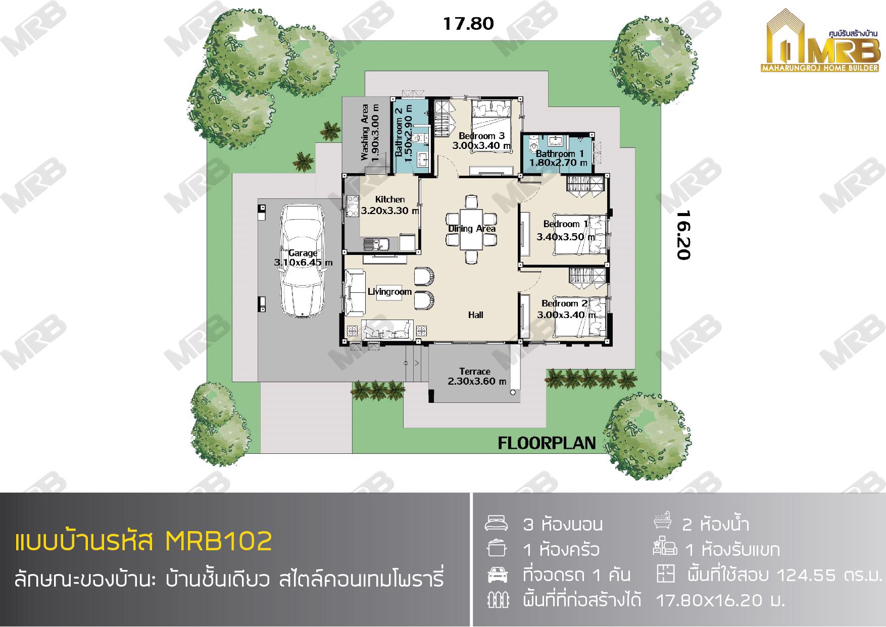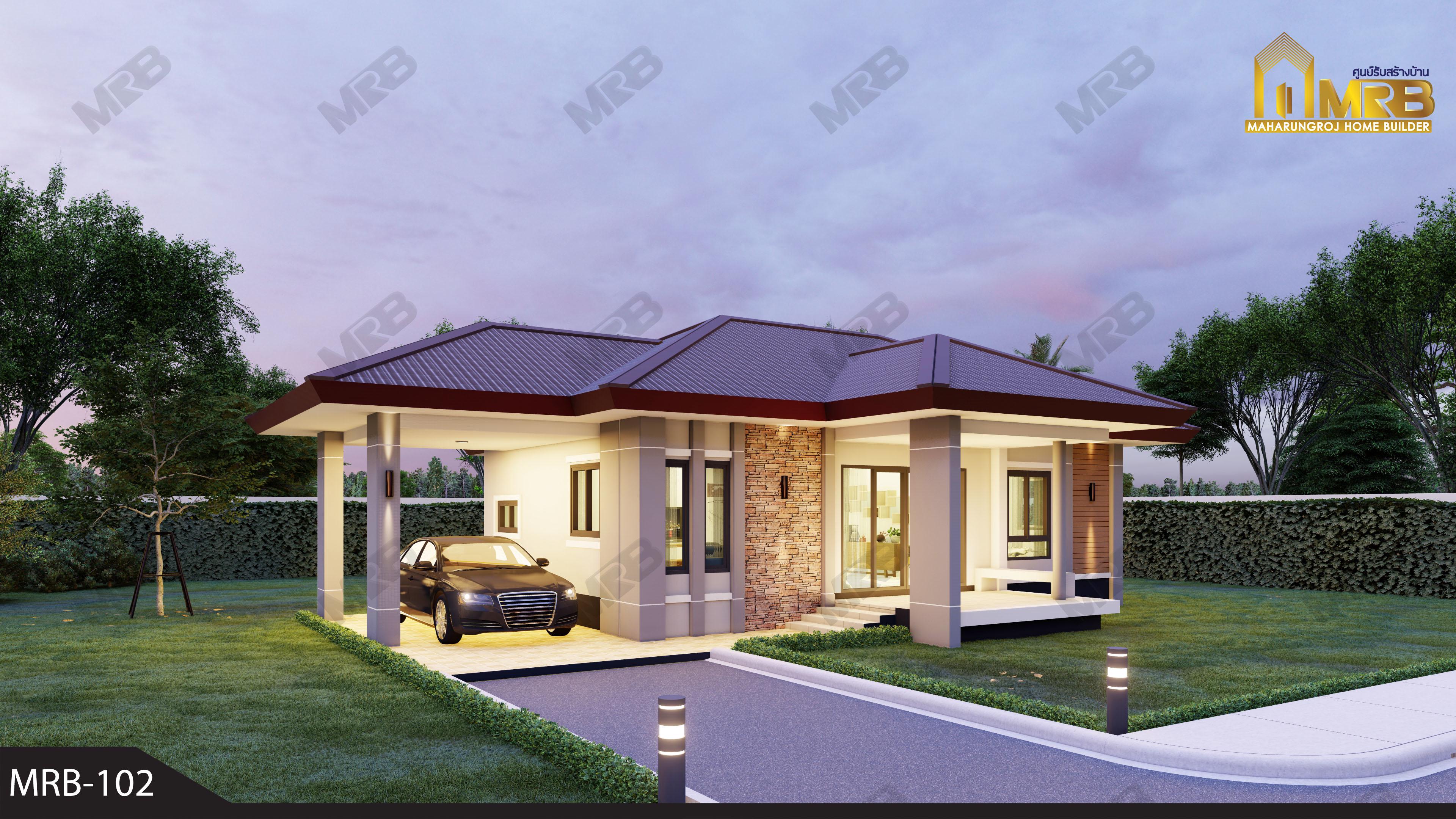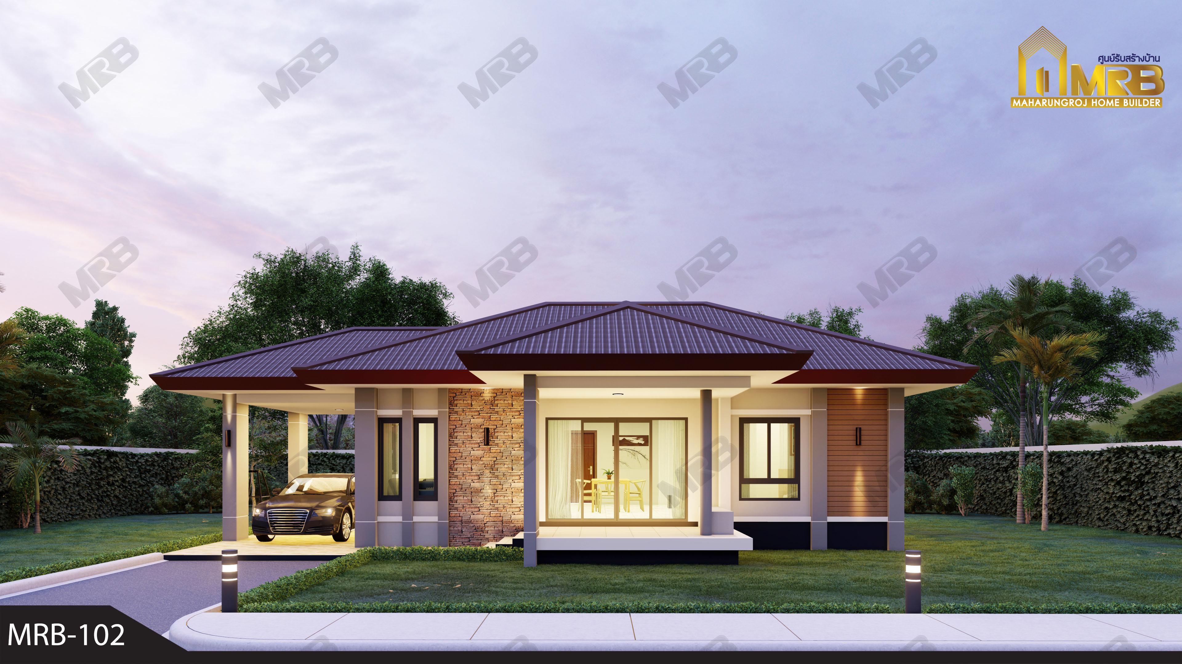แบบบ้านสไตล์ Contemporary หลังคาทรงปั้นหยา (Hip) ผสมกลิ่นอายความเป็น Modern ขนาด 3 ห้องนอน 2 ห้องน้ำโดยการออกแบบภายในนั้นแยกโซนเปียกและโซนแห้งชัดเจน พร้อมที่จอดรถ 1 คัน