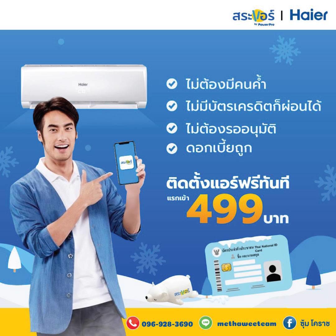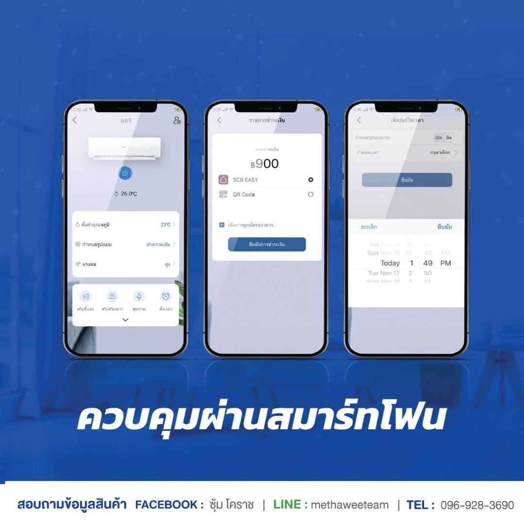 เครื่องปรับอากาศติดผนังขนาด 12,000 BTU จำหน่ายในราคาเงินสดและเงินผ่อนโดยไม่ต้องใช้บัตรเครดิต สั่งงานผ่านสมาร์ทโฟน เติมเงินเข้าระบบแอพพิเคชั่นทั้งหมด 24 เดือน ขั้นต่ำเดือนละ 900 บาท