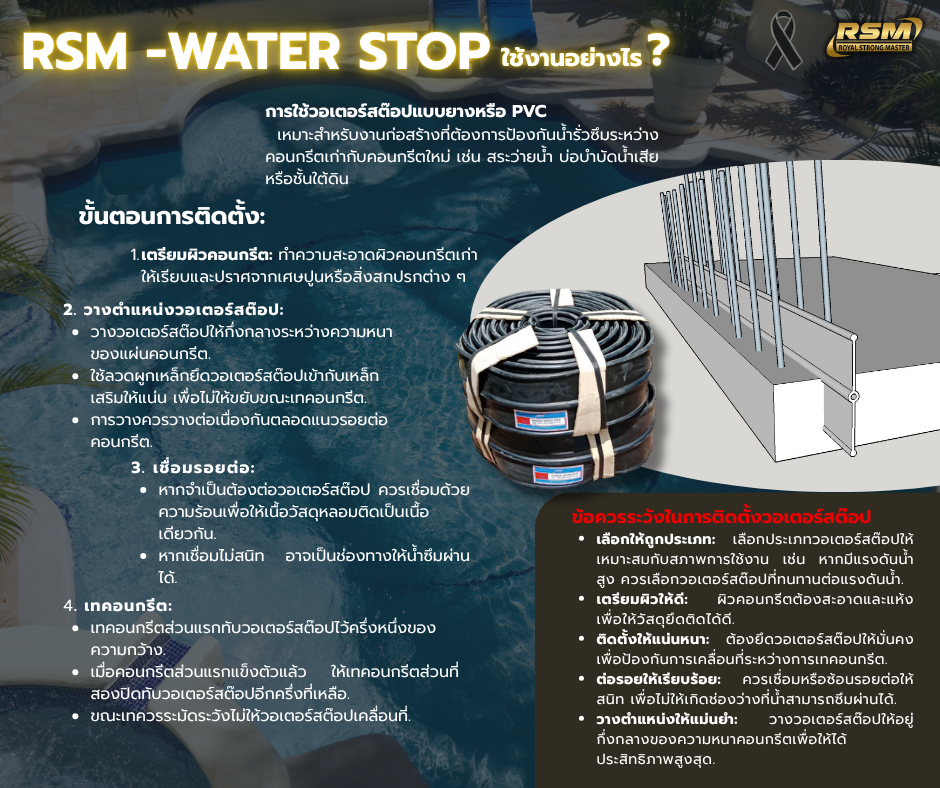 ยางกันซึมเชื่อมรอยต่อคอนกรีต เป็นยางกันซึมระหว่างรอยต่อคอนกรีต เชื่อมระหว่างรอยต่อคอนกรีต ที่ต้องหล่อหรือเทในเวลาต่างกัน